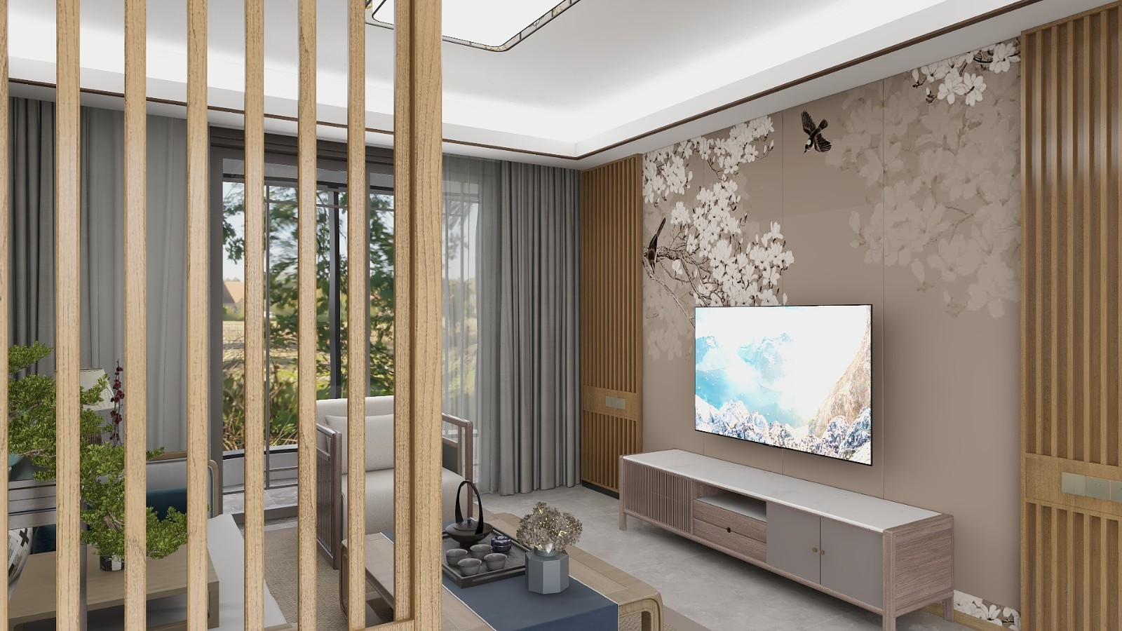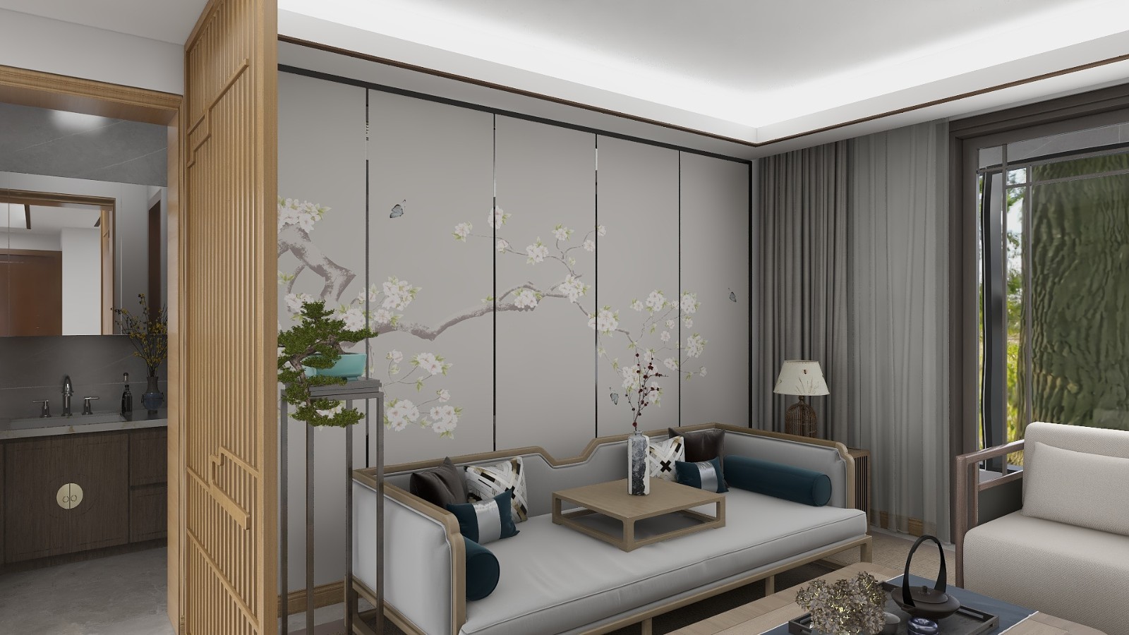 新中意境的背景墻,在富有禪意的同時不失年輕的活力